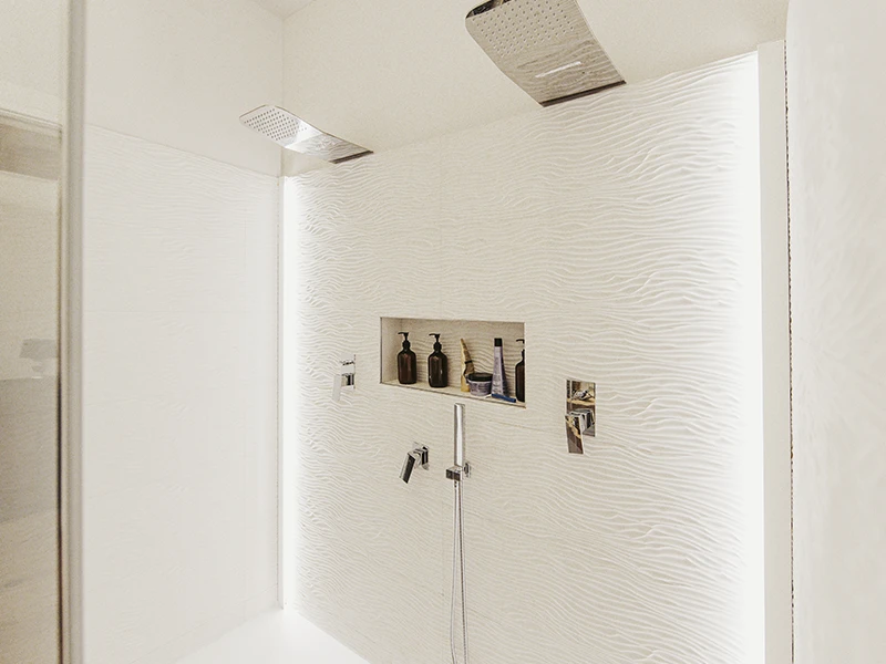 Dal punto di vista estetico, si possono rivestire le nicchie nel box doccia con piastrelle coordinate o realizzarle a contrasto cromatico, magari illuminate con strisce LED incassate.
